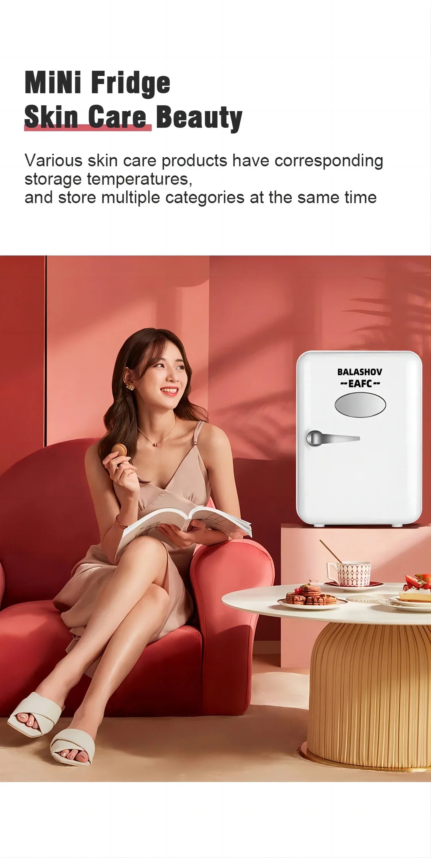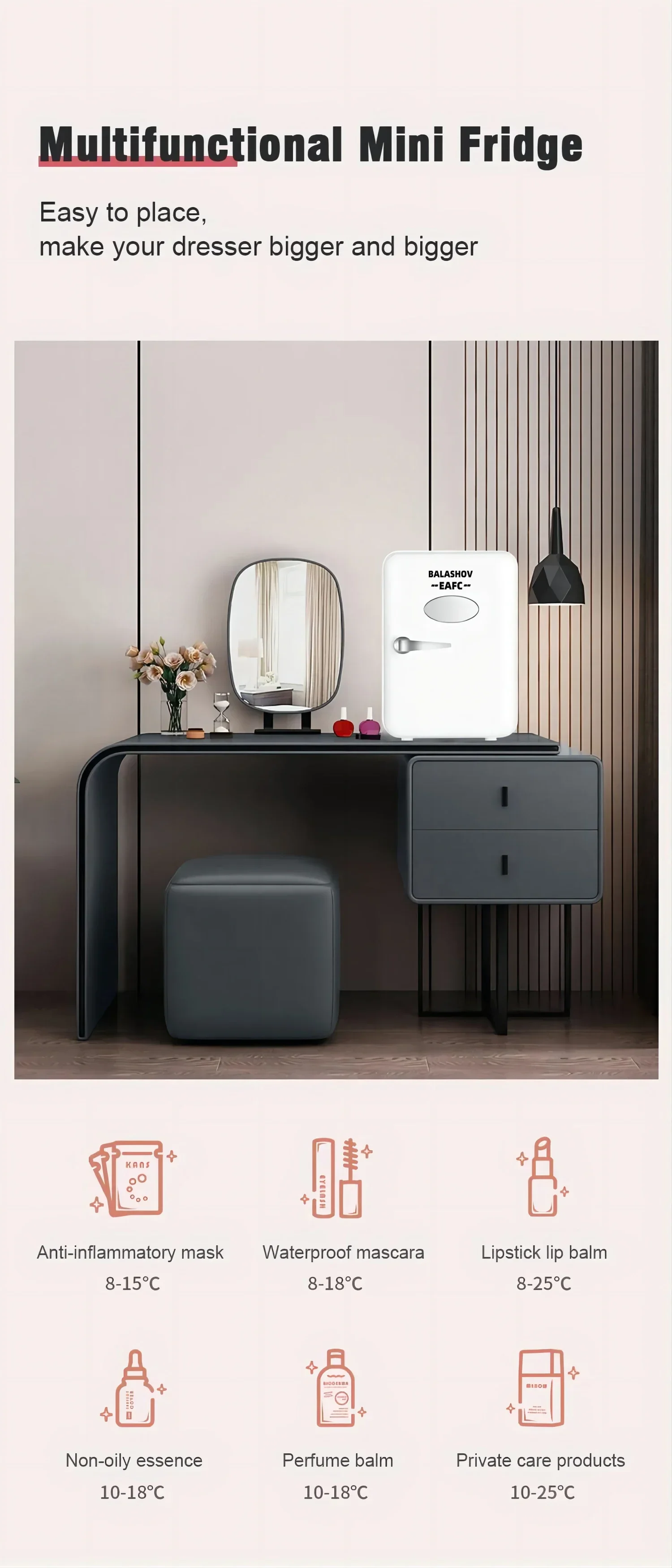 Can decrease its inner temperature to 20℃ lower than that of the environment for you to effectively maintain the efficacy & vitality of skincare products and prolong their service life.