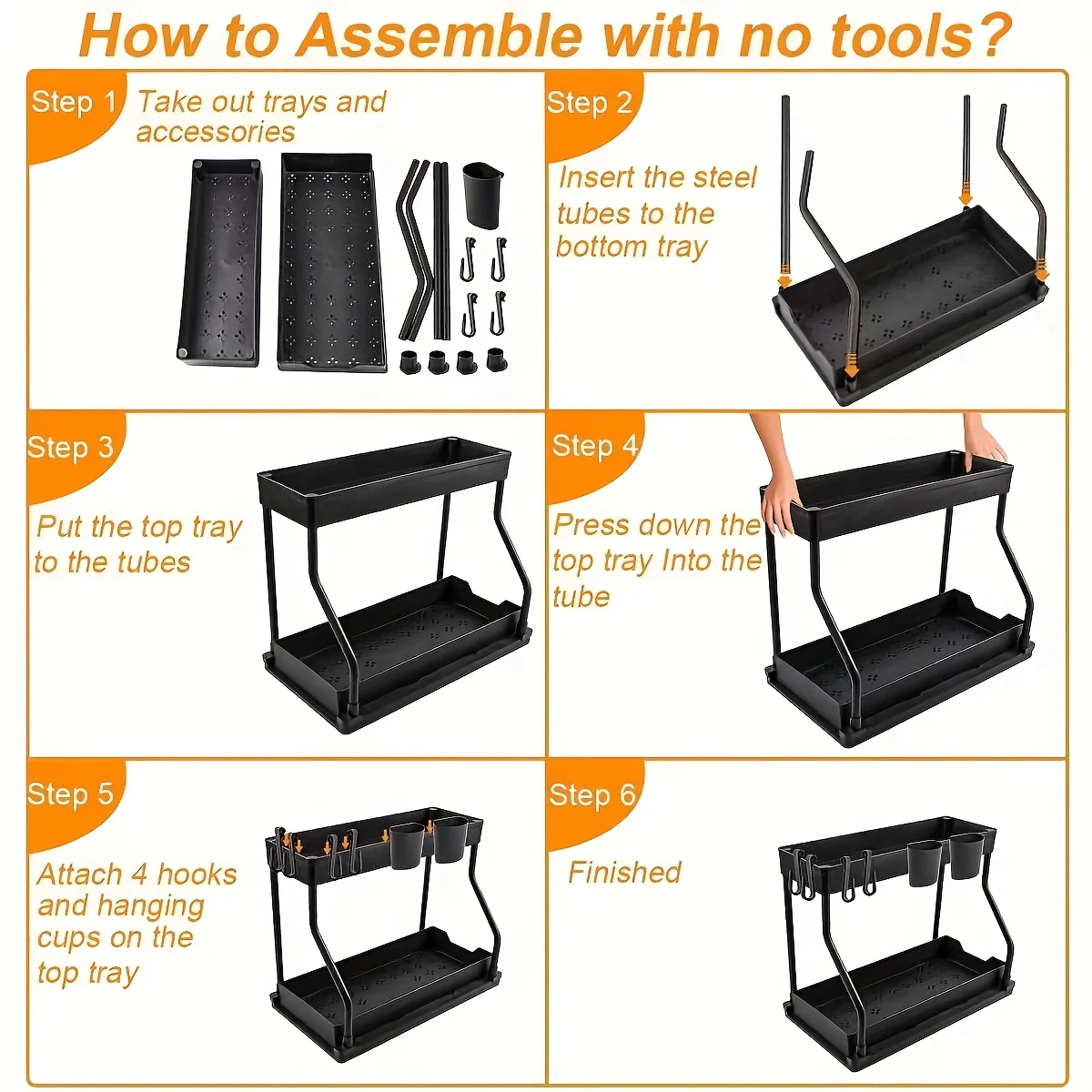 1Pc Under Sink 2 Tier Sliding Cabinet Basket Organizer Drawer Pull Out Cabinet Multi-Purpose Sink Organizer for Bathroom Kitchen