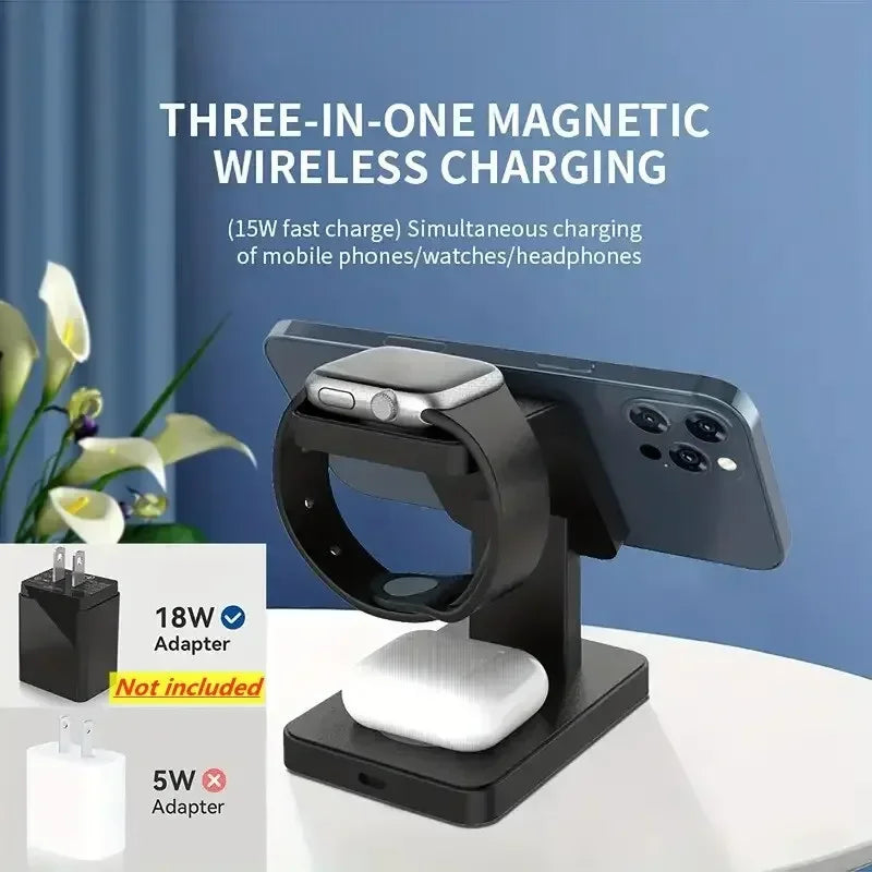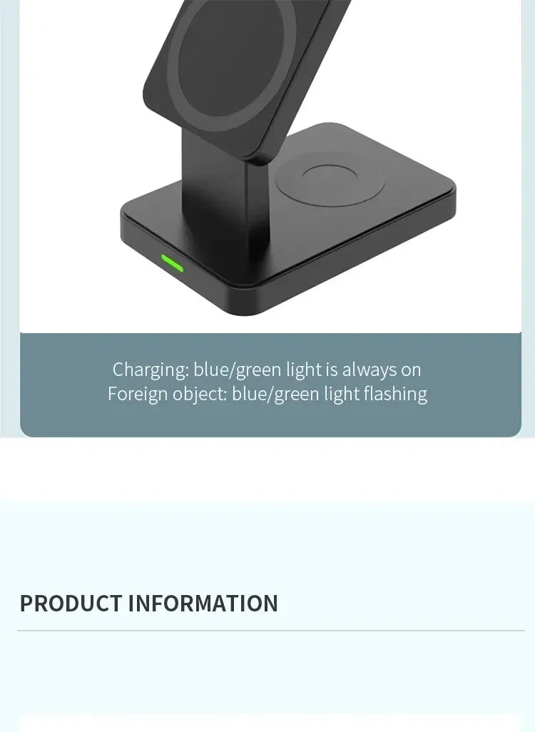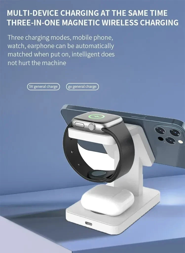 Going 3-in-1 Wireless Mag-Safe Charging StandsgggecrplMagnetic Wireless Charger 3 in 1 makes fast charging safe and easy. The Mag Safe charging station adopts the most advanced magnet technology, and instant and precise alignment in just 1s bringing you a fast and stable magnetic wireless charging experience. The iPhone Mag-Safe charger supports 360° rotation to hold your iPhone in any direction according to the scenario.