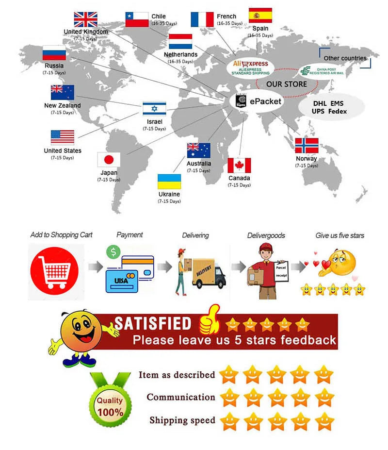 1. Package ship as soon as possible after your payment,Post air mail will take around 30-45days, some
