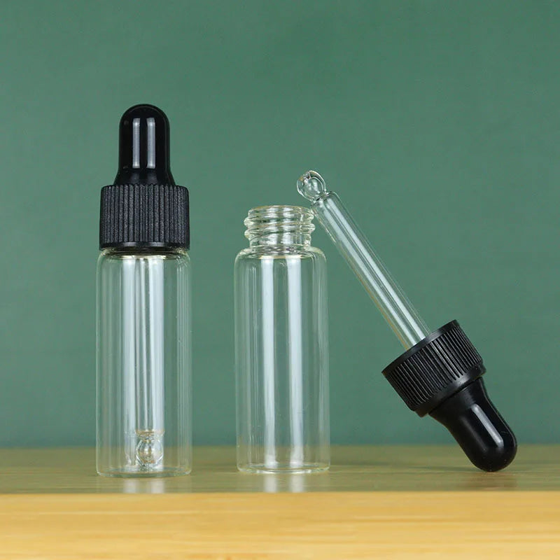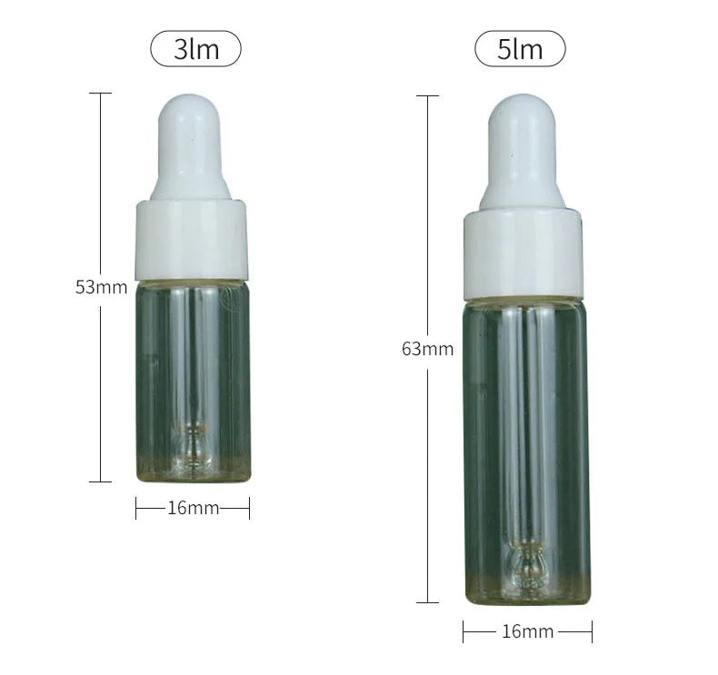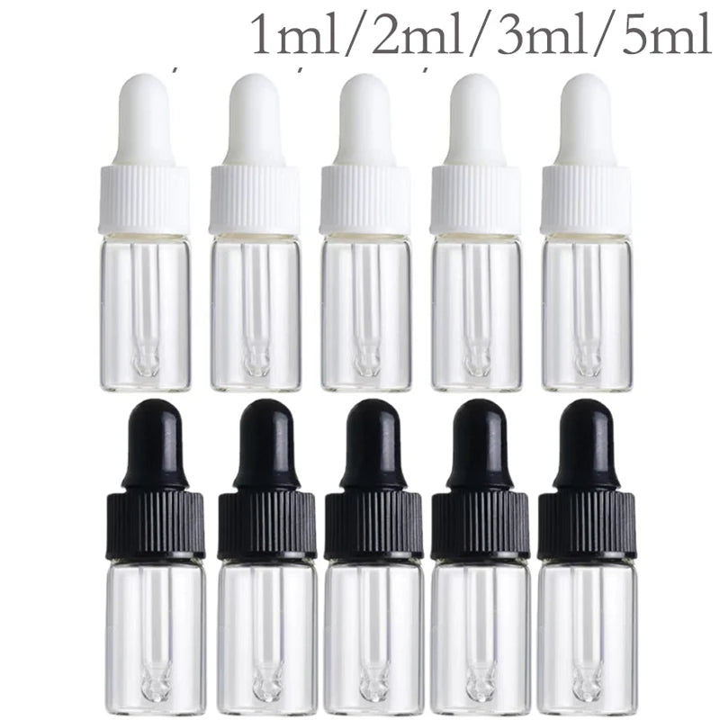 50/100PCS Clear Glass Dropping Bottles 1ml 3ml 5ml Mini Essential Oil Dropper Bottles Empty Travel Sample Vials with Black Cap