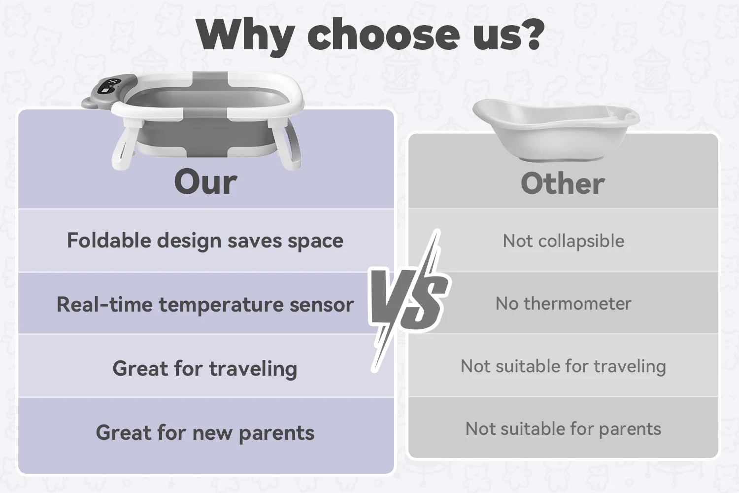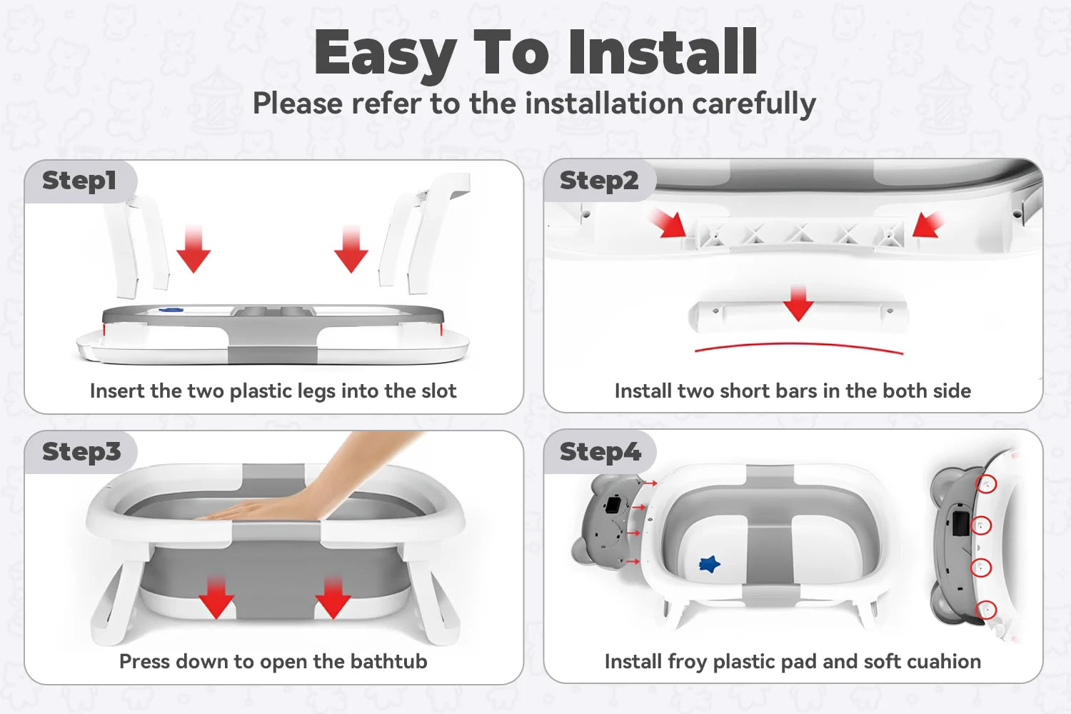 Baby Tub With Soft Cushion And Thermometer Foldable Baby Bathtub With Drain Hole Durable Foldable Baby Bath Tub Newborn To Toddl