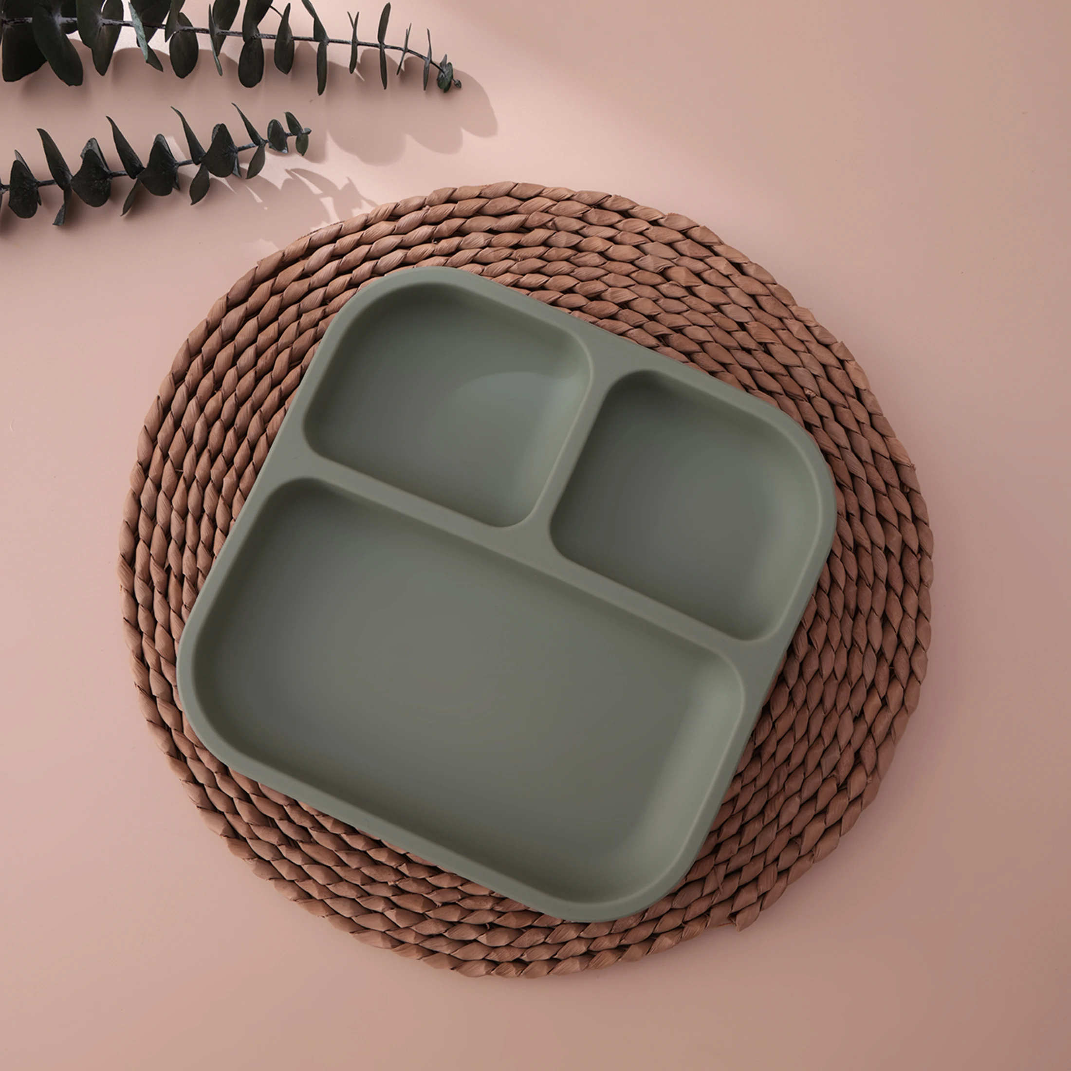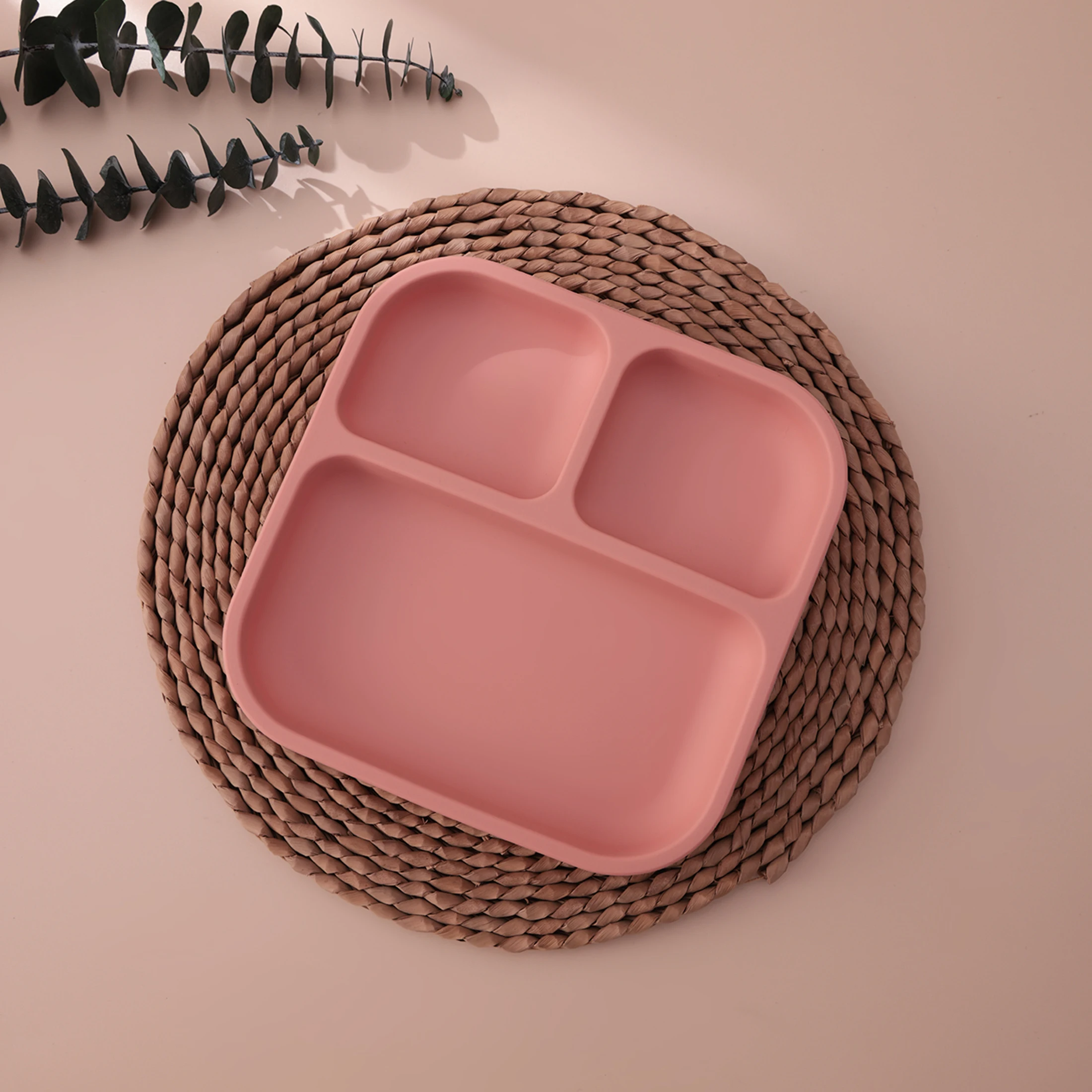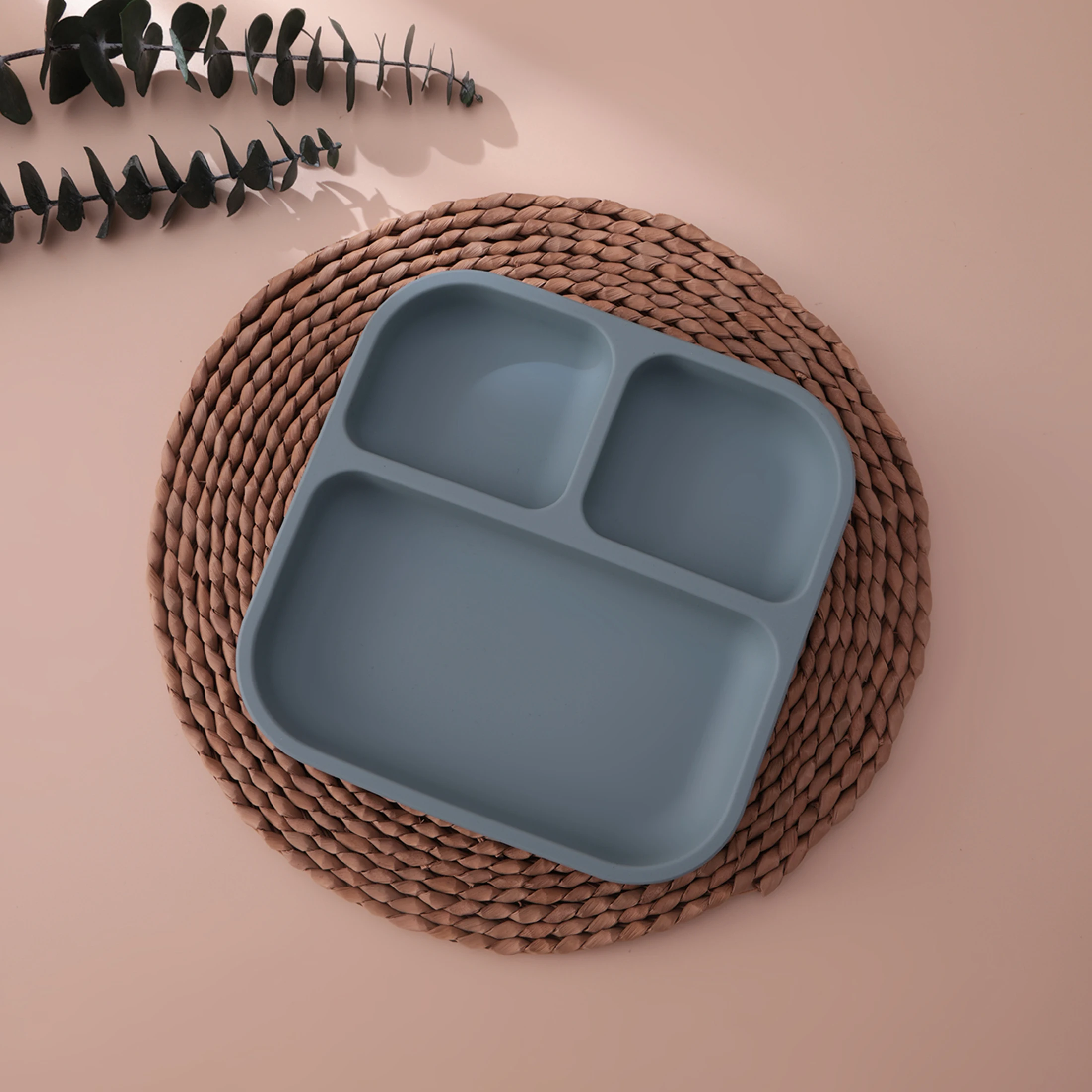 Color Kids 1PCS BPA Free Silicone Divided Square Plate Suction Baby Dish Leakproof Toddler Kids Meal Tray Easy Clean Tableware