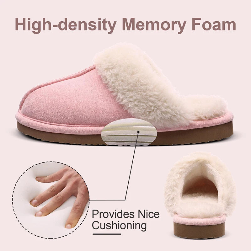 Kidmi Winter Women Fuzzy Slippers Classic Brand Fluffy House Shoes Indoor Warm Suede Cozy Slippers Casual Non-slip Cotton Shoes