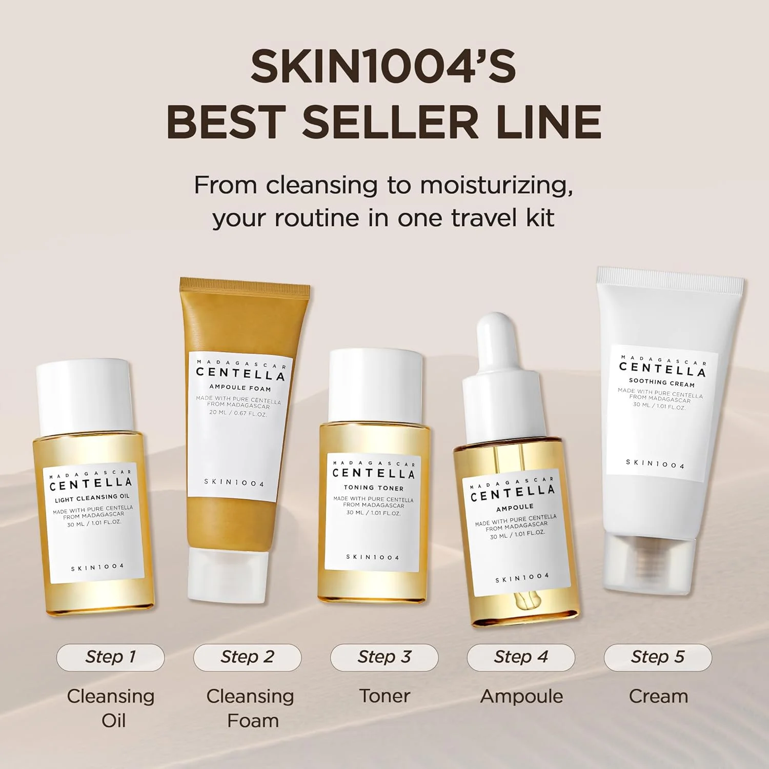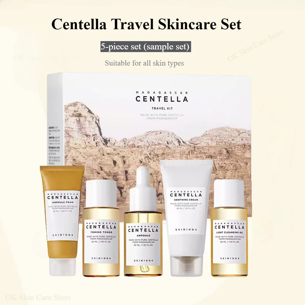 Korean Skin Care Centella Travel Kit Toner, Ampoule, Soothing Cream, Cleansing Oil, Foam, Basic Skincare Box 5pcs Set Gift Set