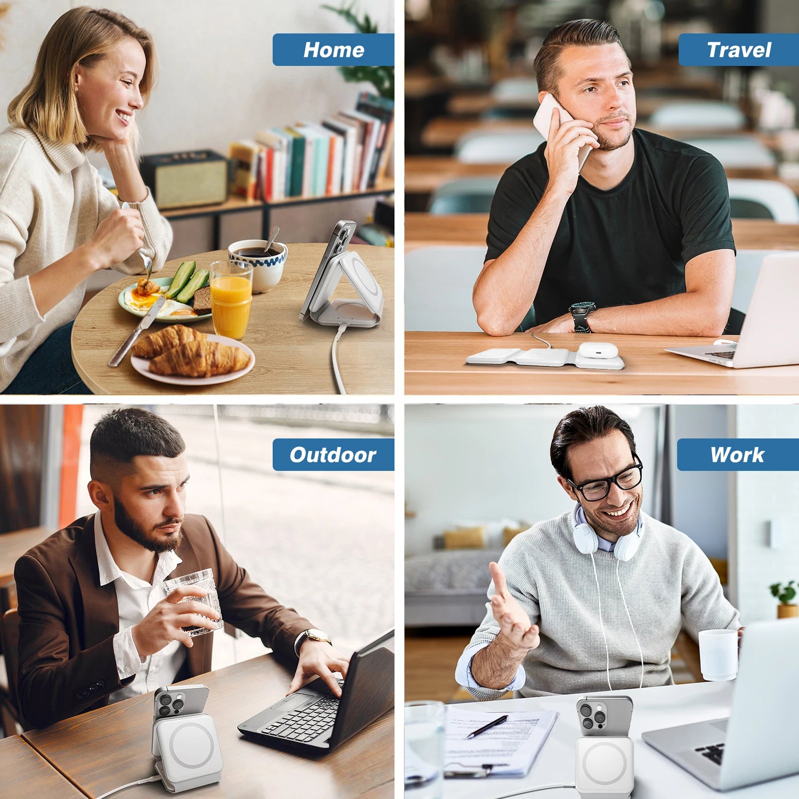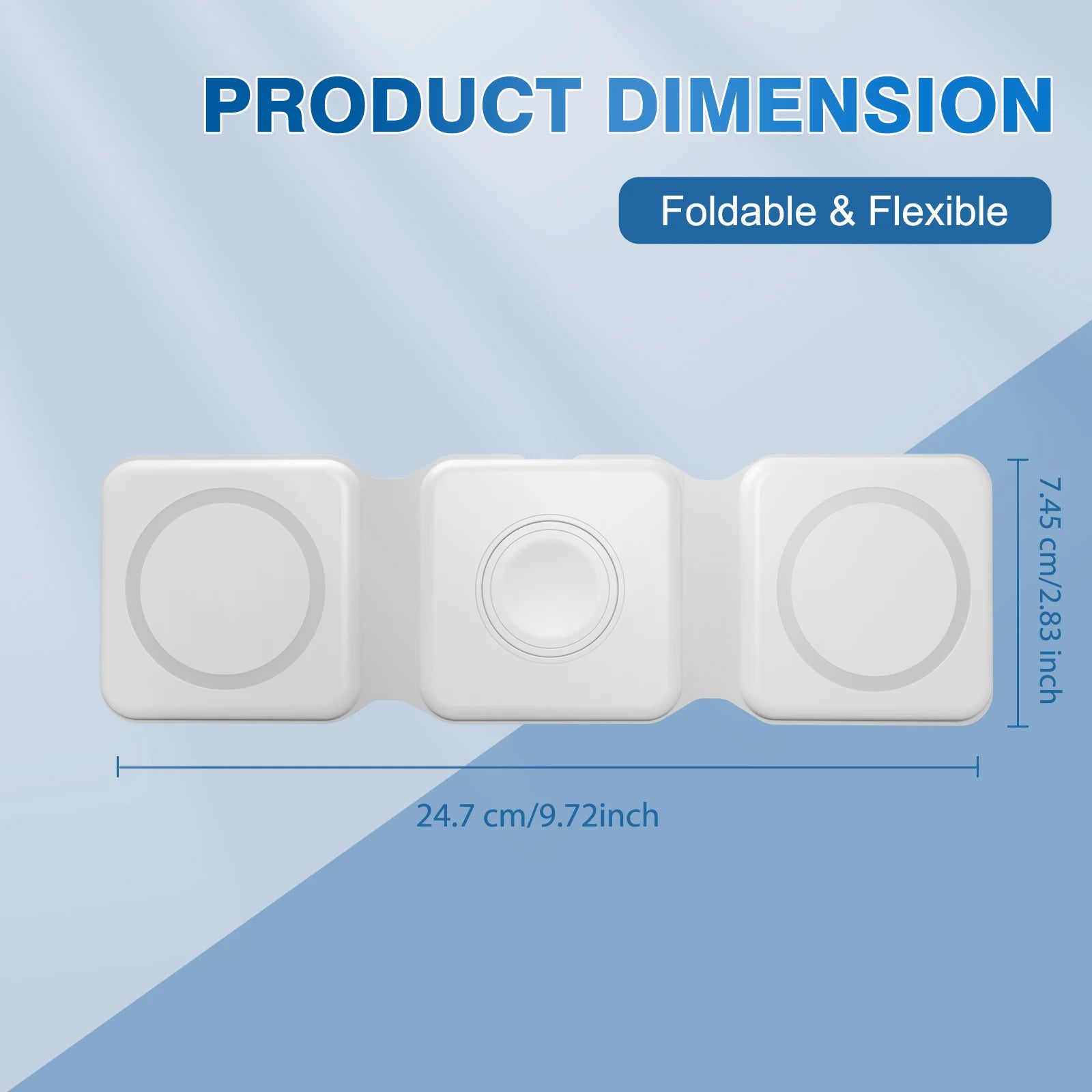 Magnetic Wireless Charger 3 In 1 Travel Charging Flexible Fast Charging Dock Station for Apple Devices for iPhone 16 15 14 13 12