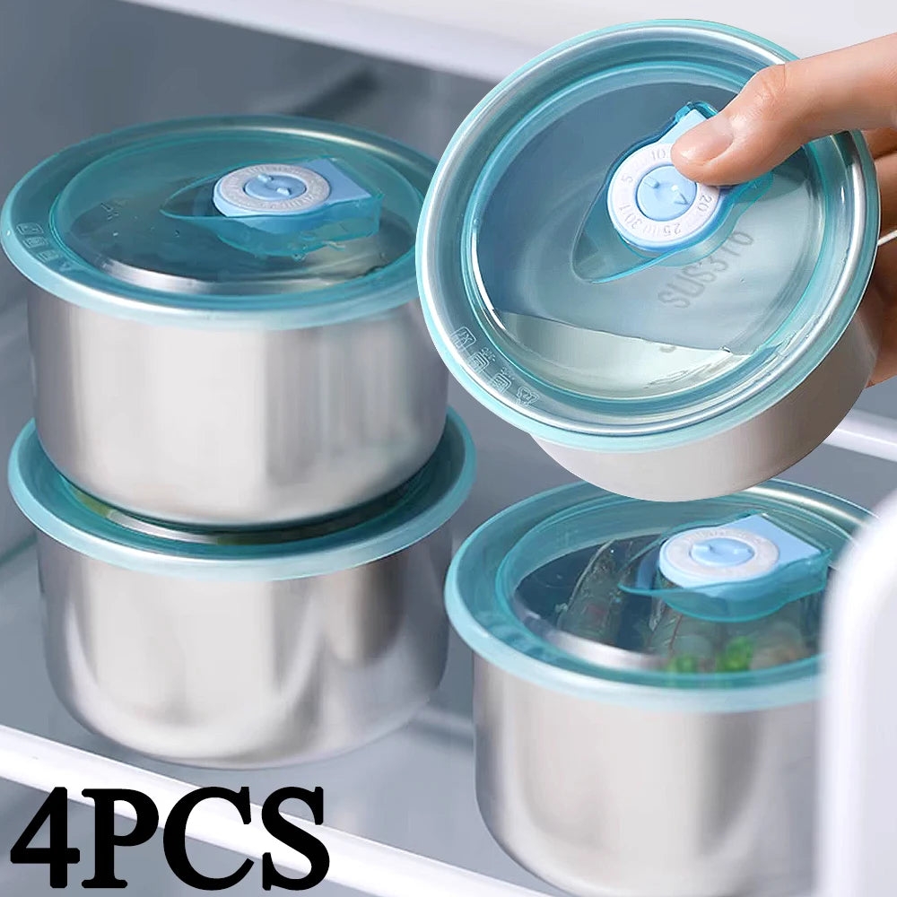 Round Leak-proof Lunch Box with Cover Stainless Steel Food Preservation Box Heat Resistant Sealed Food Storage Tank Tableware