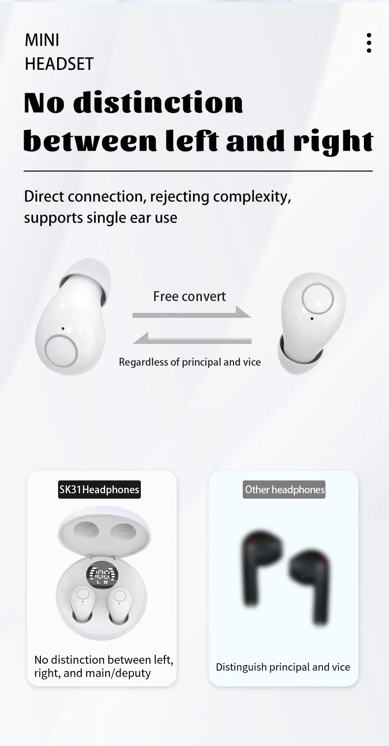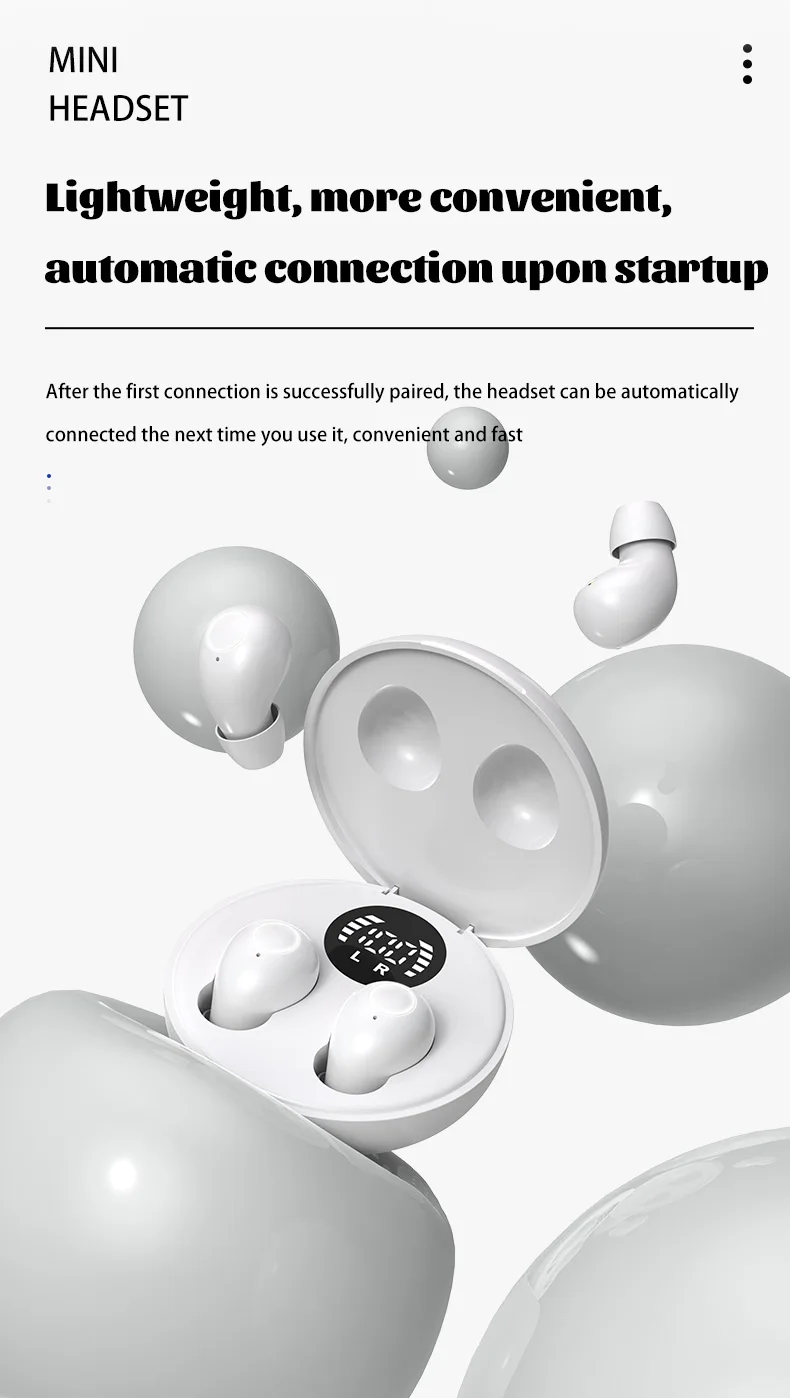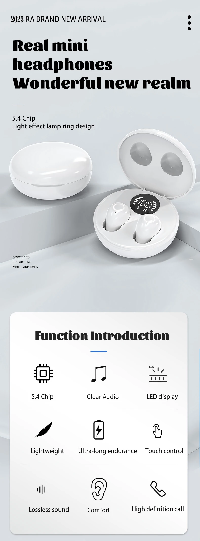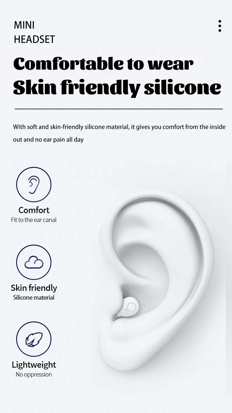 SK31 Mini Invisible Headphones Wireless Bluetooth 5.4 Headphones Bass Sleeping Headphones with Microphone Noise Cancellation HD