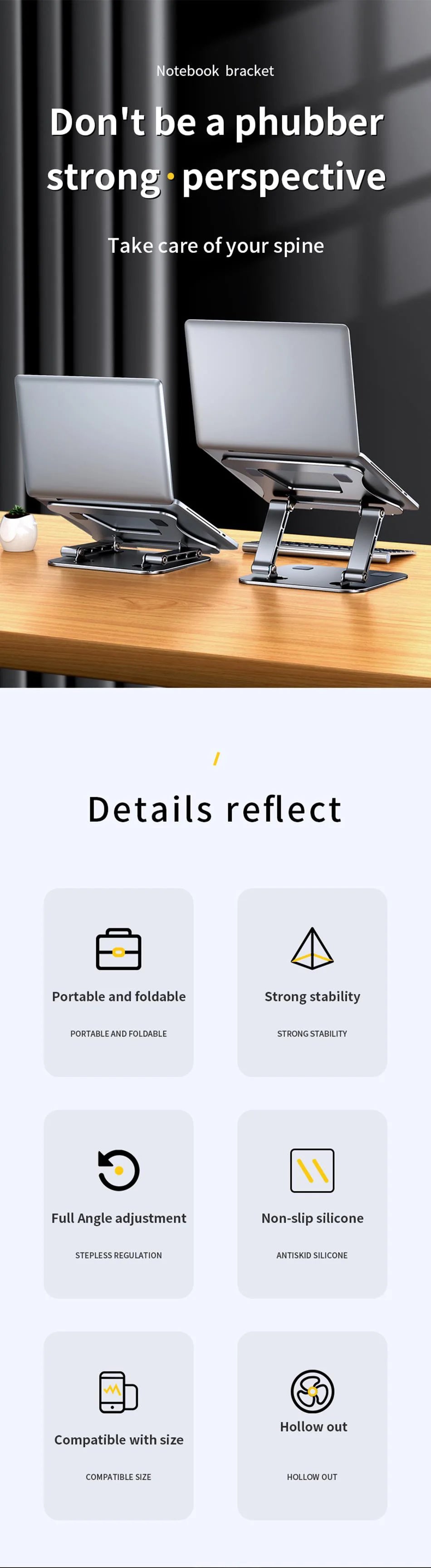 * Aluminum Alloy Construction :Crafted from durable aluminum alloy, this laptop stand offers superior strength and longevity, ensuring reliable performance for your device.