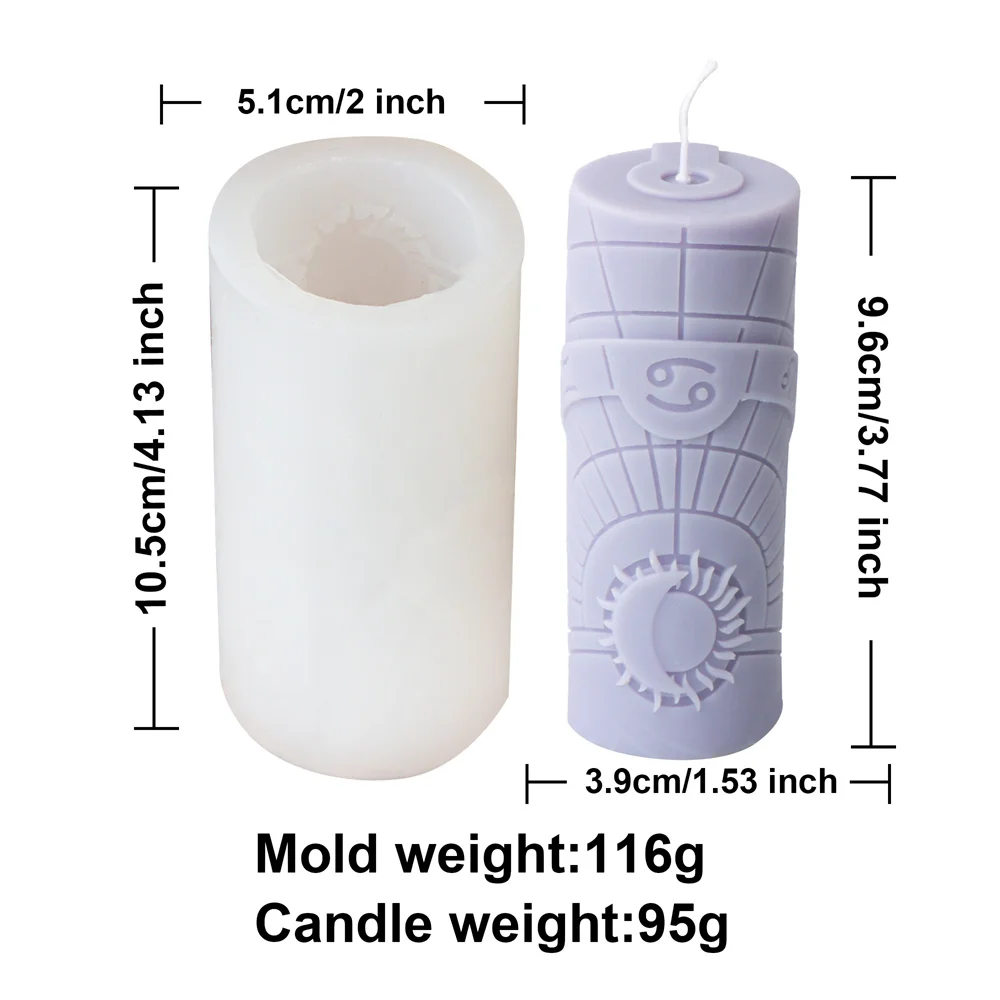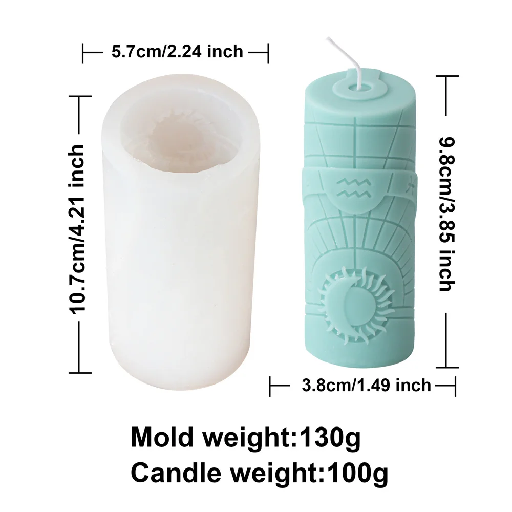 Zodiac Pillar Candle Mold DIY Twelve Constellation Tall Cylindrical Sun Luna Moon Pattern Silicone Mold Astrological Sign Decor